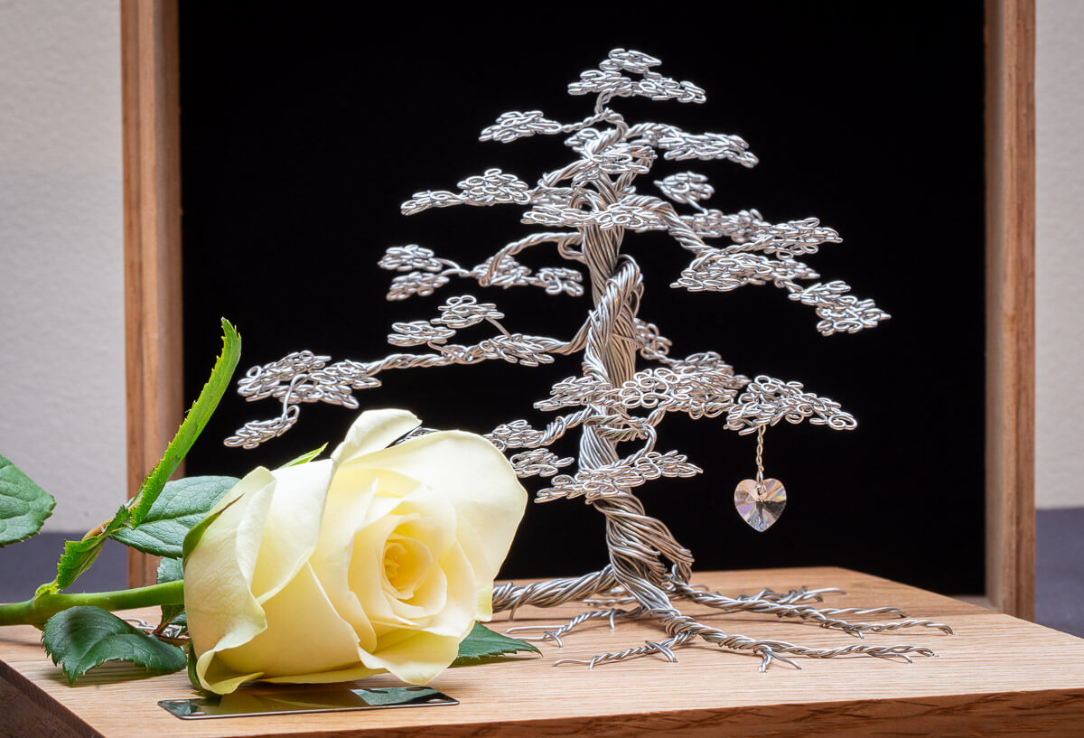 You will receive a unique wire tree, created especially for you. Either be surprised by the tree you receive or if you wish to see images of the tree prior to delivery then please contact me at the time of order.