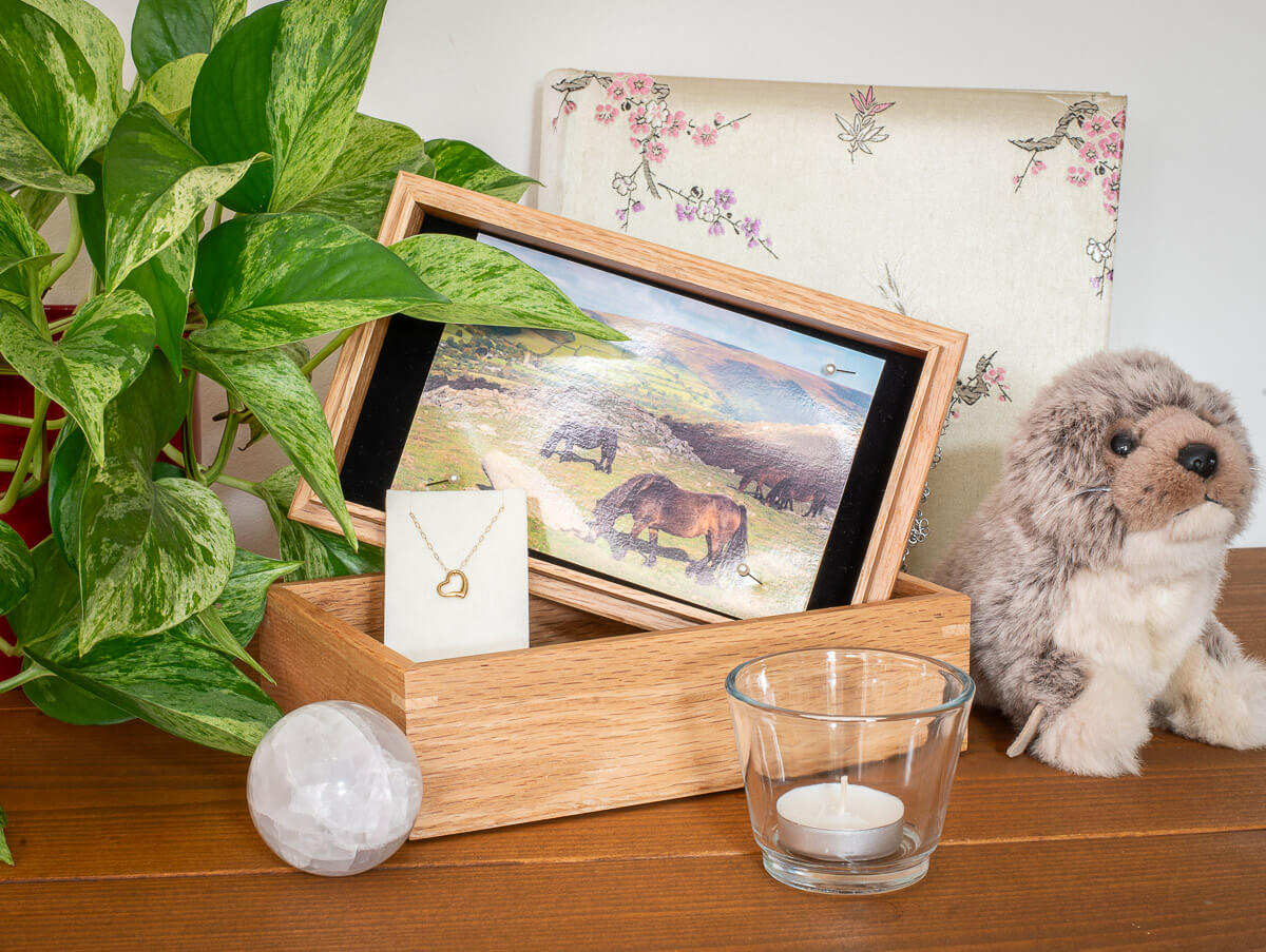 Each memory maple has its own crystal heart, select a colour when you place your order. The crystal heart will be placed in a position to best compliment the shape of the tree.