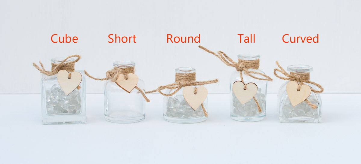 Each vase is finished with twine and a wooden heart.